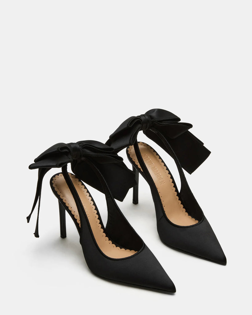 Black Pointed heels with a black bow on the back